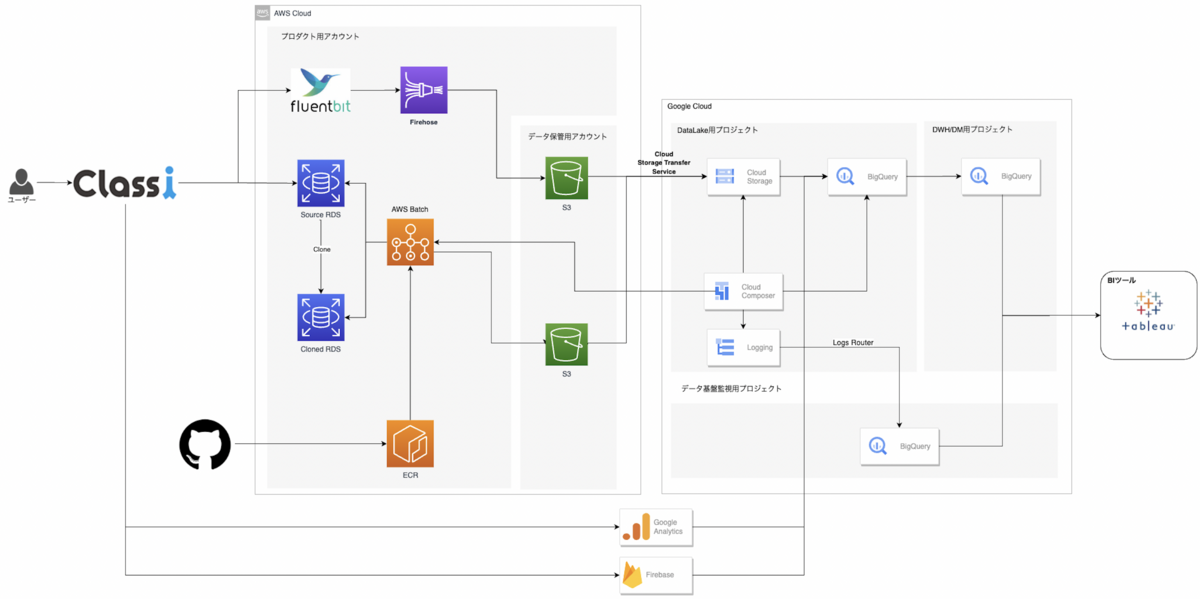 Classiのデータ基盤では、Amazon RDSからAmazon S3へJSONで出力し、その後GCS→BigQueryという流れでデータを送り、BigQueryからもBIツールやReverse ETLなどで使っています。詳細は、Classiのデータ分析基盤であるソクラテスの紹介 - Classi開発者ブログを参照してください。